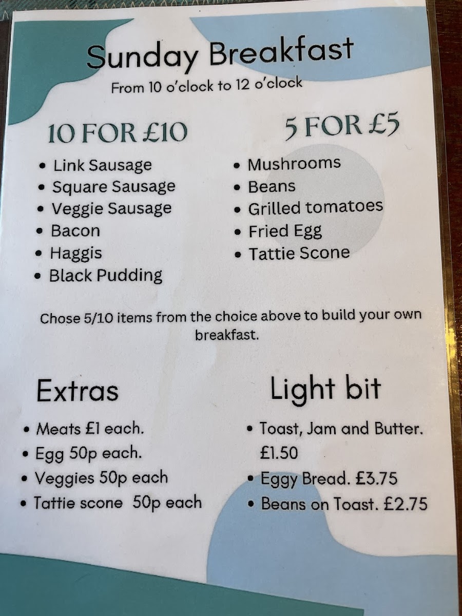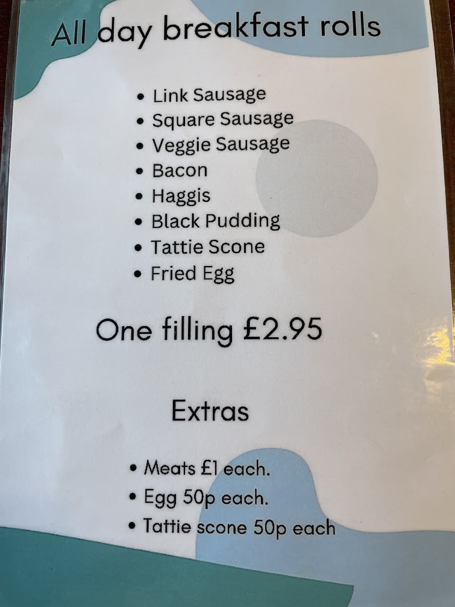 Cosy corner cafe Menu